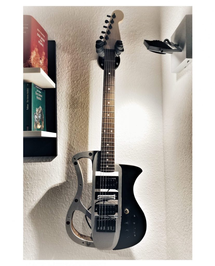 Once I thought it would be a great idea to design my own guitar. If you’ve got a CNC, a block of aluminum and some wood, feel free to replicate what I did. Here are some step files, someday some wiring diagrams and whatever I think you might want.